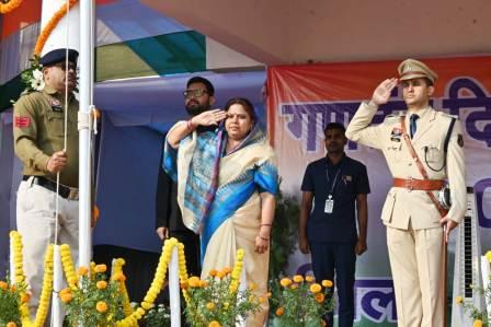 महासमुन्द (वीएनएस)। 77वे गणतंत्र दिवस समारोह के अवसर पर सांसद रूपकुमारी चौधरी ने जिला मुख्यालय स्थित मिनी स्टेडियम में आयोजित मुख्य गणतंत्र दिवस समारोह में राष्ट्रीय ध्वज फहराकर, राष्ट्रध्वज को सलामी दी। राष्ट्रगान पश्चात राष्ट्रीय गीत वंदे मातरम का गायन किया गया। सांसद चौधरी ने हर्ष के प्रतीक तीन रंग के गुब्बारें आकाश में छोड़े। इसके पश्चात सांसद चौधरी ने परेड निरीक्षण कर परेड की सलामी ली। तत्पश्चात मुख्यमंत्री का जनता के नाम संदेश का वाचन किया। मंच पर कलेक्टर विनय कुमार लंगेह, पुलिस अधीक्षक प्रभात कुमार मौजूद थे।