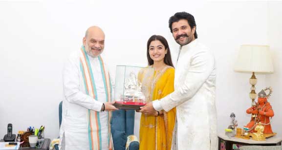 सोशल मीडिया पर आई तस्वीर में, रश्मिका और विजय को गृहमंत्री के साथ तस्वीर खिंचाते हुए देखा जा सकता है। इस मौके पर, शाह भी दोनों को गणपति की मूर्ति भेंट करते दिखाई दिए। बता दें, नवविवाहित जोड़े का रिसेप्शन 4 मार्च, 2026 को हैदराबाद में आयाेजित किया जाएगा। इसी में आमंत्रित करने के लिए दोनों, शाह से मुलाकात करने पहुंचे थे। पार्टी में फिल्म जगत, खेल और राजनीति से जुड़ी हस्तियां शिरकत करेंगी।
